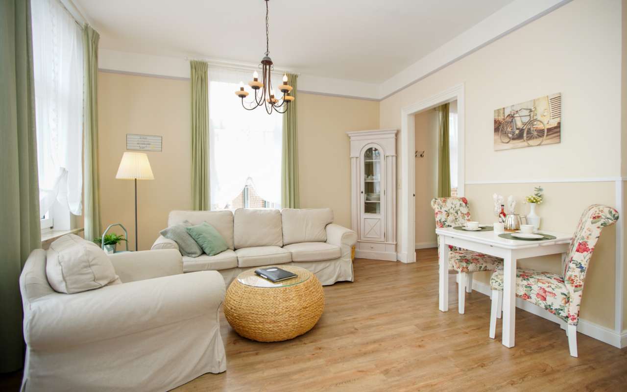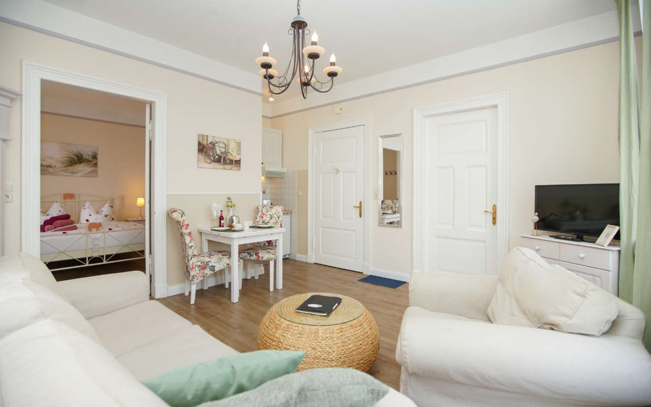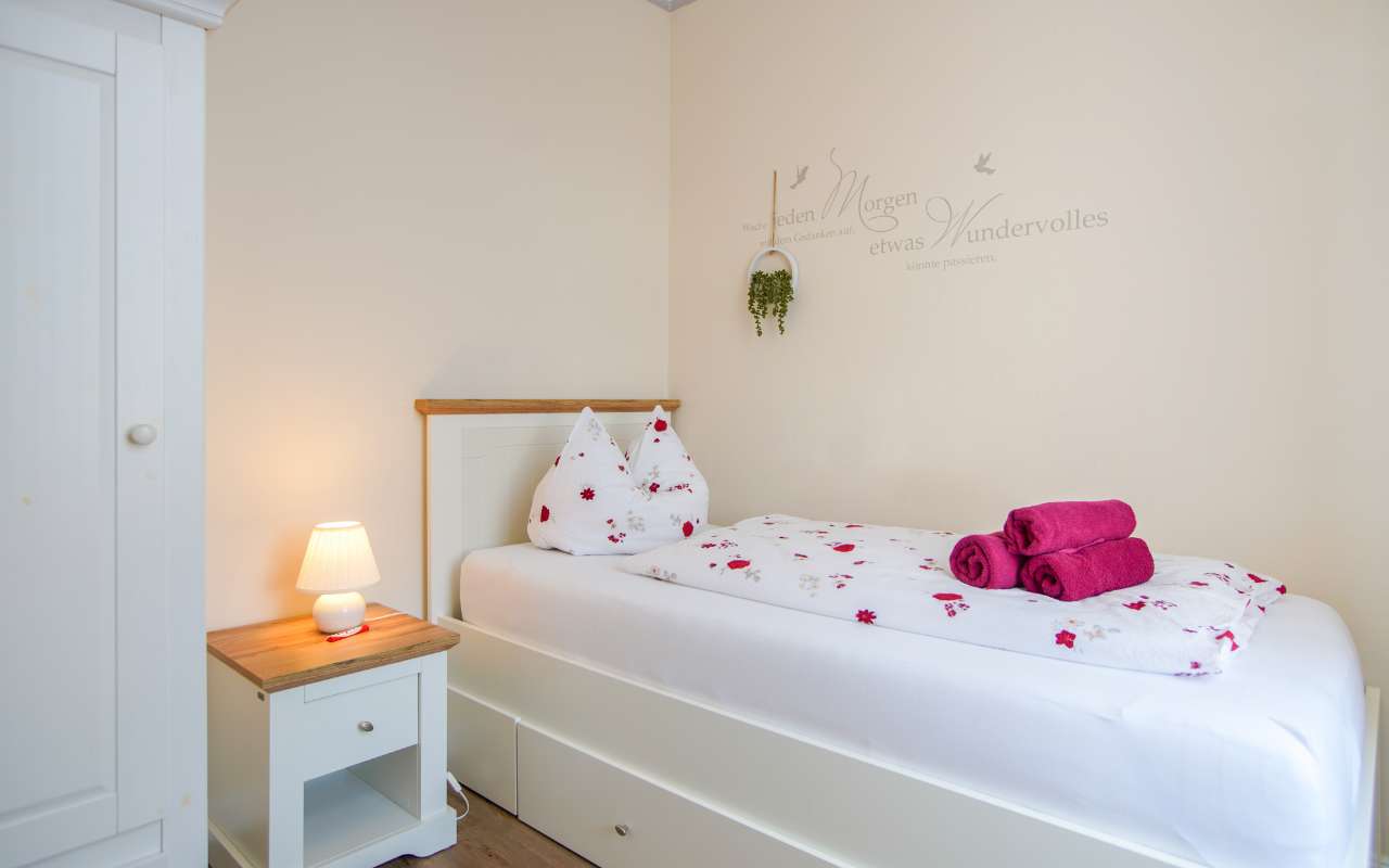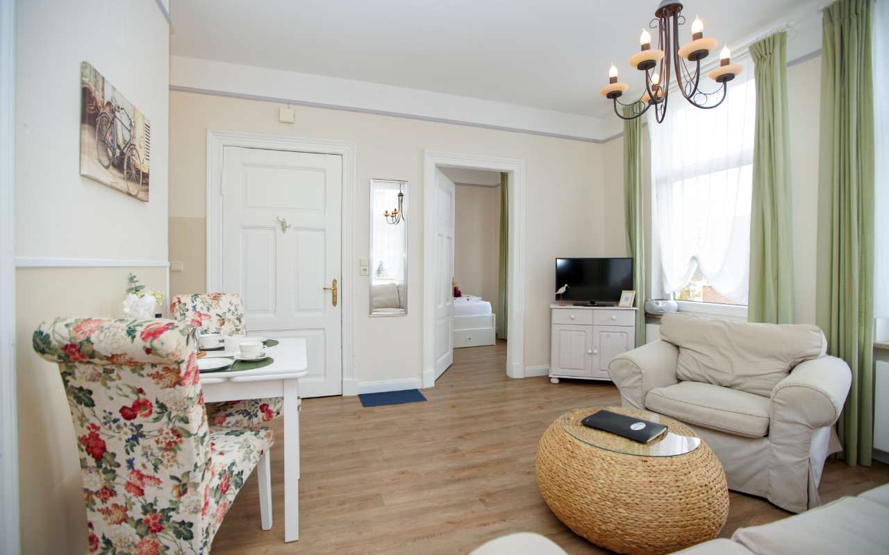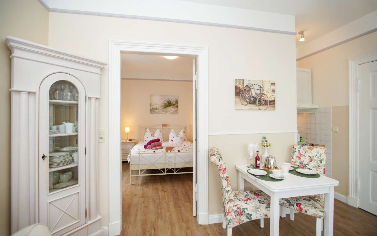 Das Apartment „Flieder“ ist ca 38 qm gross und verfügt über 2 Schlafzimmer. Es ist geeignet für eine kleine Familie mit einem Kind oder 3 erwachsene Personen.