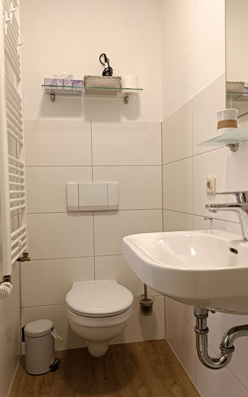 Bitte bedenken Sie: um vom Einzelzimmer zum Bad zu kommen, müssen Sie durch den Wohnraum und dann durch das große Schlafzimmer.