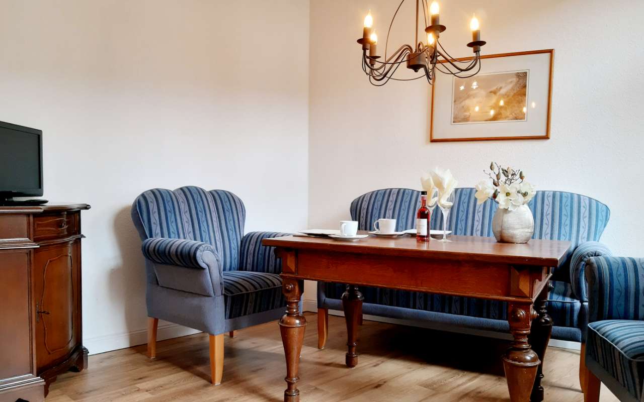 Die Wohnung Oleander ist für max. 4 Personen geeignet, liegt im hinteren Teil des Gebäudes und ist durch einen eigenen Hauseingang zu erreichen. Die separate, große Wohnküche ist mit einer gemütlichen Landhaussitzgruppe und einer großen Küche mit Spülmaschine, Backofen und Mikrowelle ausgestattet. Die Wohnung verfügt über zwei, voneinander getrennte Schlafzimmer und eine separate, eigene Terrasse, welche über den Eingang zu erreichen ist. Das Wohnzimmer ist ausgestattet mit einer Sofasitzecke in L-Form und grossem Fernseher.