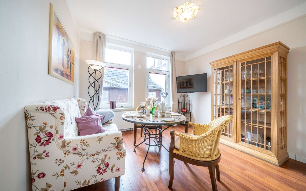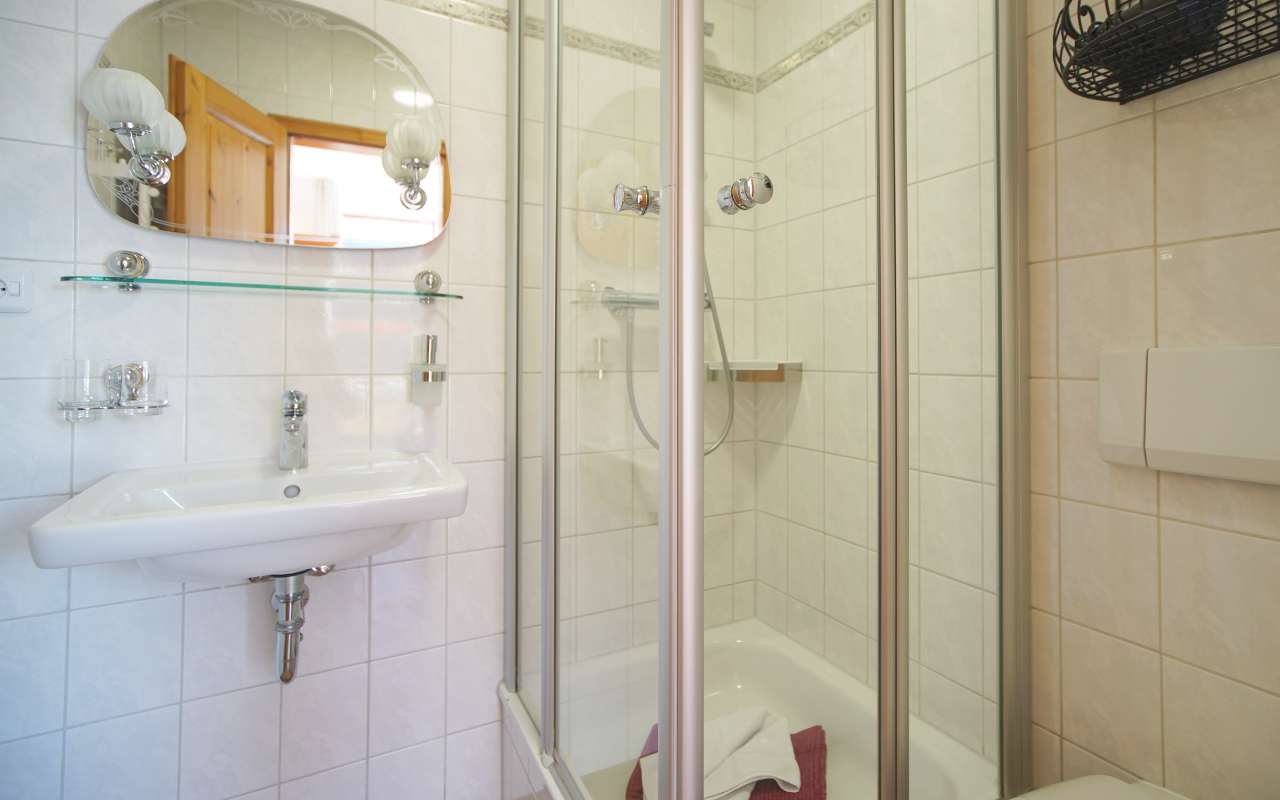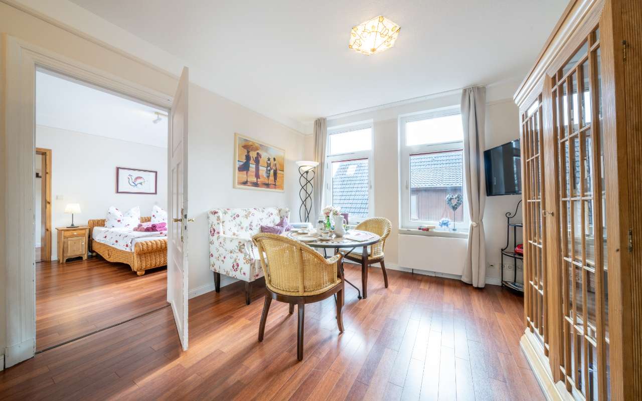 Das Apartment „Veilchen“ ist ca 40 qm gross und verfügt über 2 Schlafzimmer. Dieses Apartment ist geeignet für eine kleine Familie mit einem Kind oder 3 erwachsene Personen. Der Wohnraum ist gleichzeitig Wohnzimmer, Esszimmer und Küche. Alles klein und gemütlich, aber gross genug um sich wohlzufühlen. Ausgestattet mit kleiner Küchenzeile mit allem, was man benötigt, gemütlicher Essecke, Sofa, Sessel und Fernseher. Das grosse Schlafzimmer hat ein Doppelbett (160x200cm), mit Zugang zum kleinen Duschbad/WC. Das kleine Schlafzimmer hat ein Einzelbett (90x200cm), mit elektrisch verstellbarem Lattenrost und einer offenen Garderobe.